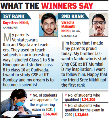 Koye Sri Nikhil from Anantapur secured the first rank and Varadha Mahanth Naidu, Rajam, Srikakulam secured the second rank.