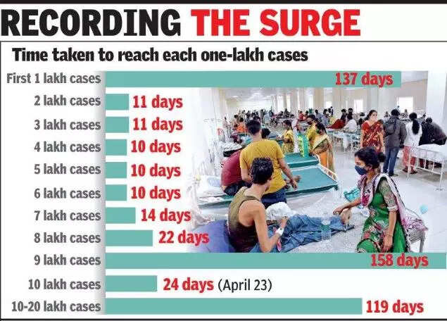 To put things in perspective, the state took more than a year (407 days) to log the first 10 lakh infections. The intensity of the second wave can be gauged from the fact that the state accumulated 5.9 lakh Covid-19 cases this May alone, equivalent to 35% of the cumulative cases that surfaced in the state by then.