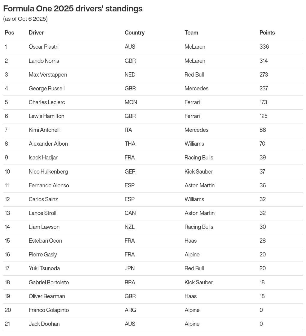 The British driver now trails Piastri by 22 points with 174 points to play for across the final six rounds.