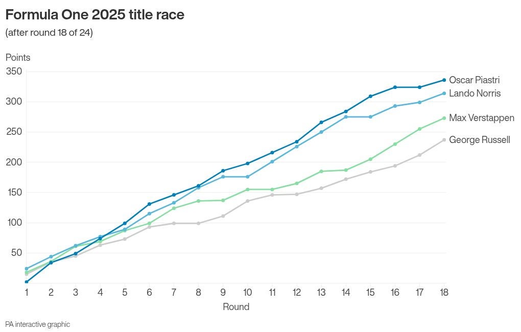 Norris finished third, one place clear of Piastri, to take three points out of his title lead.