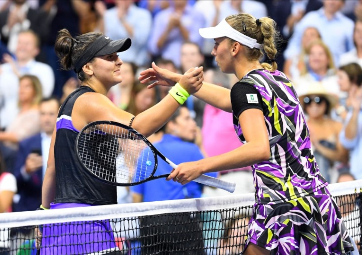 After a flawless first set from Mertens the tide turned in Andreescu's favour in the second when she fired a cross-court forehand winner to break the Belgian at love and take a 4-2 lead.
