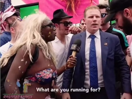 The candidate's entourage was less forgiving of the slight and began shouting down Crackhead Barney, screaming "F*** you" at the TikTok star.