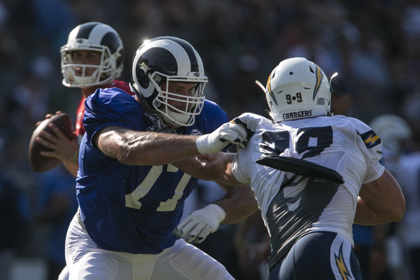 Last season, the offensive line carried the burden as the team stumbled to a 4-12 finish. Goff was sacked 26 times in seven starts and Gurley was unable to gain 100 yards in a single game.