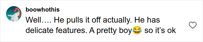 “He looks so nice…Beautiful boy, like his beautiful mother,” one said, while another wrote, “Love his jeans too! He’s very handsome, and I’m glad she lets them be who they are individually. It’s good parenting.”
