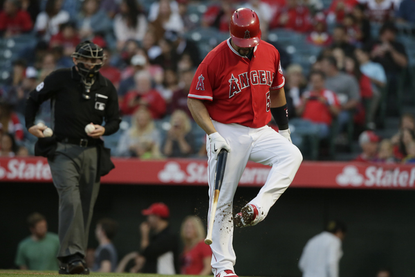 The Angels notched their first run on a Calhoun home run in the sixth and challenged for another in the seventh. Marte walked and Martin Maldonado singled, putting the go-ahead run in scoring position without an out. Then Danny Espinosa and Eric Young Jr. struck out. After Ben Revere singled off reliever Tyler Duffey's glove to load the bases, Simmons took two called strikes and popped out harmlessly. He hurled his bat in disgust as soon as he finished his swing.