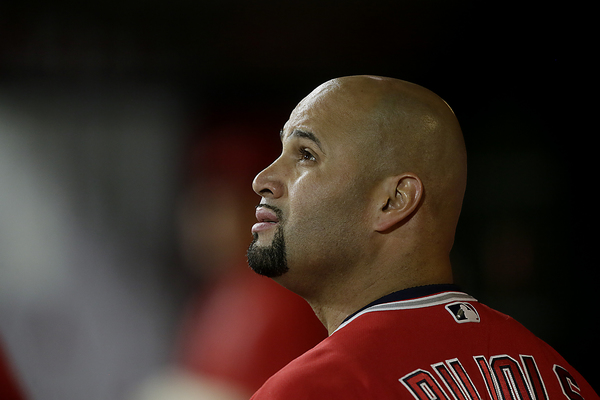 In his four bids at home run No. 600, Albert Pujols struck out, singled, grounded out, and flied out. He will have three more games to reach that milestone at home before he must take this show to Detroit, where Jim Thome reached 600 six years ago.