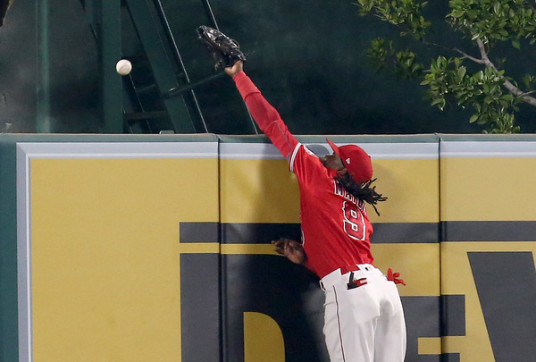 Yusmeiro Petit pitched a perfect seventh. Trayce Thompson started the eighth with a 413-foot shot to left against rookie Keynan Middleton. With two outs, Justin Turner drove a ball 381 feet to right-center field, where Maybin caught it with his back against the wall.