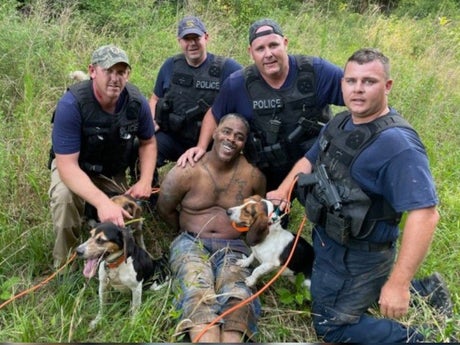 Police in Mississippi have sparked anger after four white officers with dogs posed for a photo with a captured Black suspect.