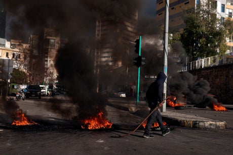Protesters in Lebanon burned tires and closed several major roads on Thursday as the severe economic crisis gripping the country continued to spiral out of control with no progress on the formation of a new Cabinet