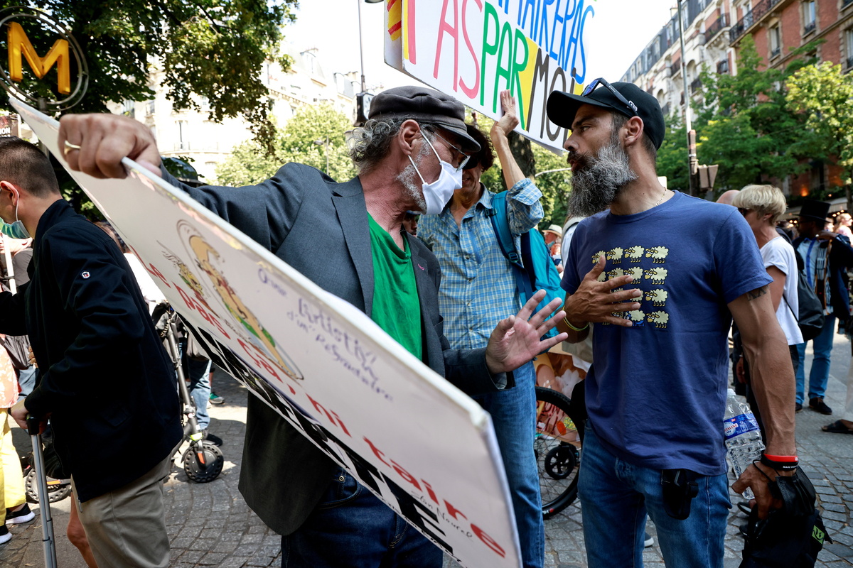 The health pass protests have been mostly peaceful. But police used tear gas to disperse protests in Paris on July 14. Two vaccination centres were targeted in arson attacks. The speaker of the French parliament said some lawmakers who back the health pass received death threats.