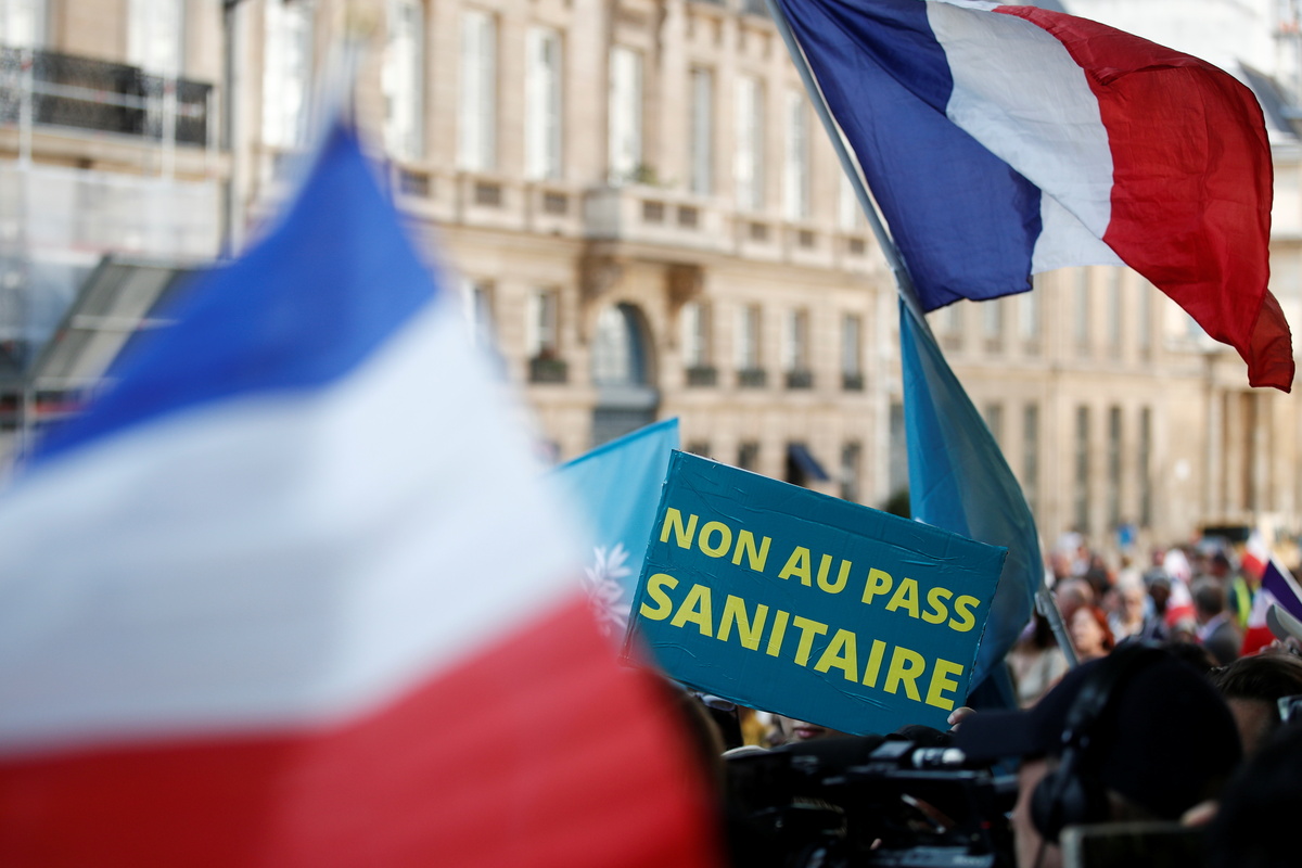 Macron's administration has submitted legislation to parliament which will stop people entering restaurants and bars without a "health pass", showing they are vaccinated, have had a recent negative test, or have immunity from COVID-19. Opponents say the state is, de facto, forcing people to get jabbed.