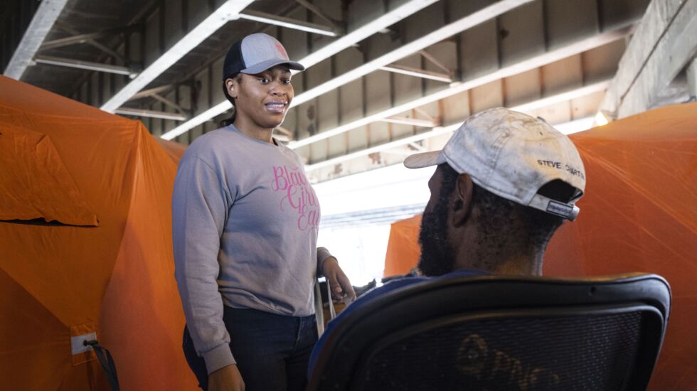 Clark said she planned to stay in a tent of her own at the camp under the Dan Ryan Expressway in Pilsen until she had raised $1 million, which is what she said she needs to open her own ideal center.