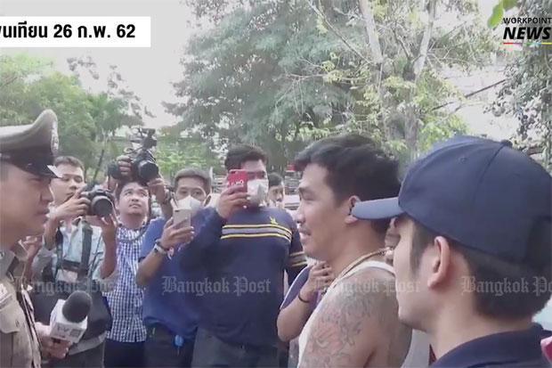 Leading about 100 supporters, Apirak Chat-anont, also known as Sia Po, said the men who raided the secondary school had defied the law. He and other people from Bangkok's Thon Buri area decided to visit the men and warn them about their behaviour.