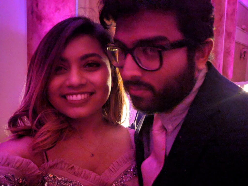 The honeymoon, also canceled, isn't looking so great, Ahmed admits. "I was slow rolling our honeymoon plans even before Covid flared up. So we hadn't settled on a particular plan. We are going to try and do a small road trip down East Coast when the quarantine clears up."
