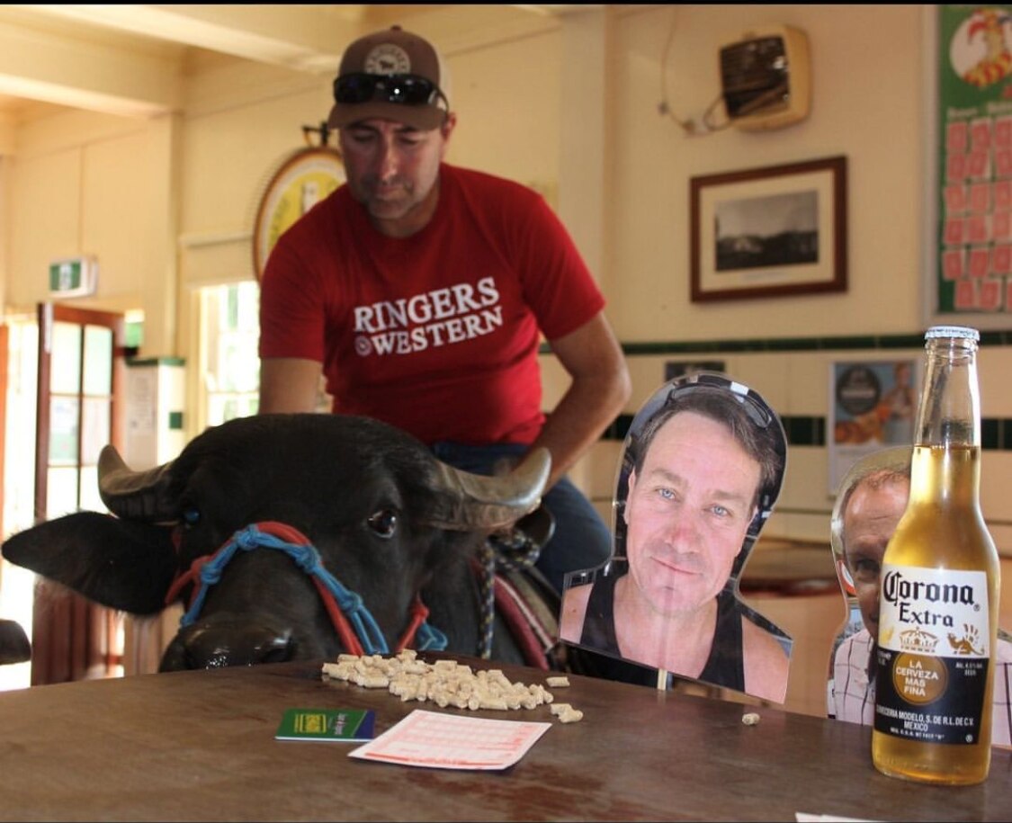 Have you heard the one about the bloke who rode his thirsty buffalo into a pub?