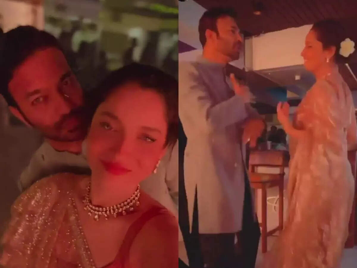 Ankita and Vicky had a pre-wedding celebration with close friends. The Pavitra Rishta actress shared several videos from the celebration night. Ankita wore a gold shimmery lace sari with a floral hairdo. Vicky wore a pastel shade, elegant bandhgala and trousers.
