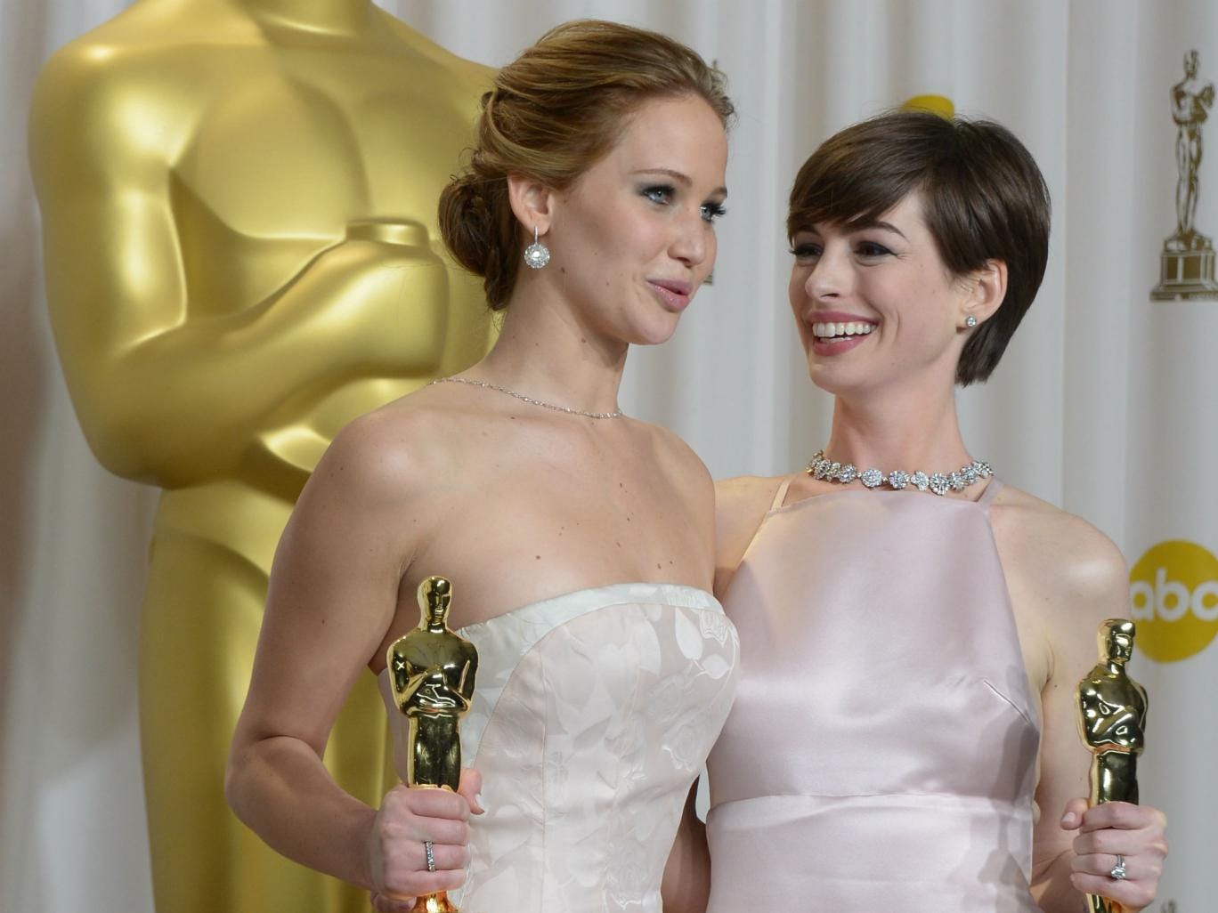 Anne Hathaway has come to Jennifer Lawrence's defence after an off-the-cuff comment led to suggestions the Joy actress was “going too far” just for making a joke.