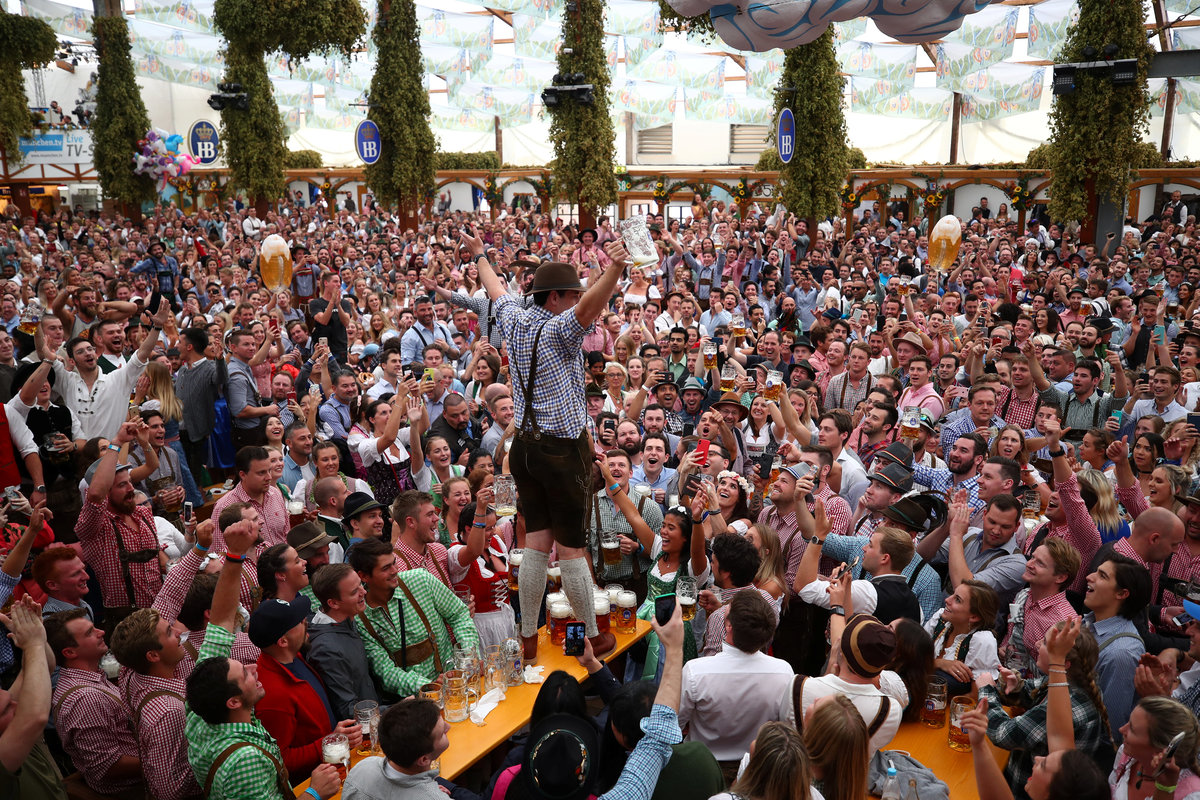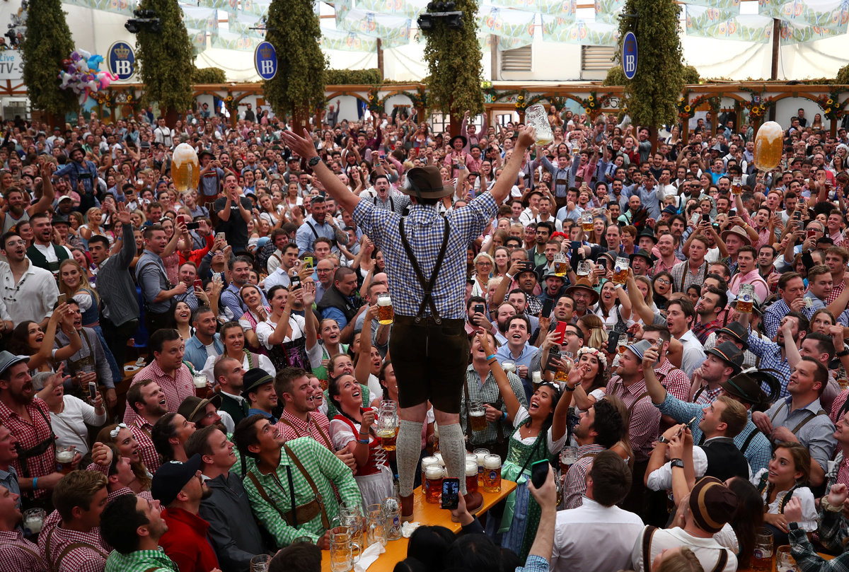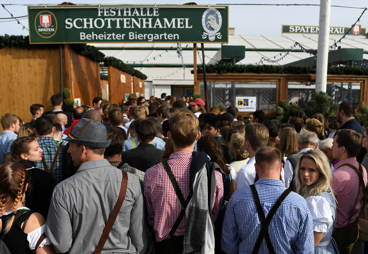 A visitor rests during the opening day of the 185th Oktoberfest in Munich, Germany September 22, 2018. REUTERS/Andreas GebertVisitors cheer with beers during the opening day of the 185th Oktoberfest in Munich, Germany September 22, 2018. REUTERS/Michael DalderVisitors ride a swing ride during the opening day of the 185th Oktoberfest in Munich, Germany September 22, 2018. REUTERS/Andreas GebertVisitors ride a ferris wheel during the opening day of the 185th Oktoberfest in Munich, Germany September 22, 2018. REUTERS/Michael DalderVisitors ride a swing ride during the opening day of the 185th Oktoberfest in Munich, Germany September 22, 2018. REUTERS/Andreas GebertA general view shows the festival ground during the opening day of the 185th Oktoberfest in Munich, Germany September 22, 2018. REUTERS/Michael DalderVisitors ride a roller coaster during the opening day of the 185th Oktoberfest in Munich, Germany September 22, 2018. REUTERS/Michael DalderA visitor drinks beer during the opening day of the 185th Oktoberfest in Munich, Germany September 22, 2018. REUTERS/Michael DalderA general view shows the festival ground during the opening day of the 185th Oktoberfest in Munich, Germany September 22, 2018. REUTERS/Andreas GebertVisitors cheer during the opening day of the 185th Oktoberfest in Munich, Germany September 22, 2018. REUTERS/Michael DalderMunich mayor Dieter Reiter prepares to tap the first barrel of beer during the opening ceremony of the 185th Oktoberfest in Munich, Germany September 22, 2018. REUTERS/Andreas GebertMunich mayor Dieter Reiter prepares to tap the first barrel of beer during the opening ceremony of the 185th Oktoberfest in Munich, Germany September 22, 2018. REUTERS/Andreas GebertVisitors toast with beers during the opening day of the 185th Oktoberfest in Munich, Germany September 22, 2018. REUTERS/Michael DalderVisitors toast with beers during the opening day of the 185th Oktoberfest in Munich, Germany September 22, 2018. REUTERS/Michael DalderVisitors reach for the first mugs of beer during the opening day of the 185th Oktoberfest in Munich, Germany September 22, 2018. REUTERS/Michael DalderMunich mayor Dieter Reiter and Bavarian State Prime Minister Markus Soeder toast with beers at the opening day of the 185th Oktoberfest in Munich, Germany September 22, 2018. REUTERS/Andreas GebertMunich mayor Dieter Reiter and Bavarian State Prime Minister Markus Soeder toast with beers at the opening day of the 185th Oktoberfest in Munich, Germany September 22, 2018. REUTERS/Andreas GebertMunich mayor Dieter Reiter and Bavarian State Prime Minister Markus Soeder pose at the opening day of the 185th Oktoberfest in Munich, Germany September 22, 2018. REUTERS/Andreas GebertVisitors take photos at the opening day of the 185th Oktoberfest in Munich, Germany September 22, 2018. REUTERS/Michael DalderVisitors cheer at the opening day of the 185th Oktoberfest in Munich, Germany September 22, 2018. REUTERS/Michael DalderVisitors run to get a spot at the Oktoberfest area at the opening day of the 185th Oktoberfest in Munich, Germany September 22, 2018. REUTERS/Andreas GebertA visitor poses for a picture at the opening day of the 185th Oktoberfest in Munich, Germany September 22, 2018. REUTERS/Andreas GebertA visitor poses for a picture at the opening day of the 185th Oktoberfest in Munich, Germany September 22, 2018. REUTERS/Andreas GebertVisitors queue as they wait to enter the tent at the opening day of the 185th Oktoberfest in Munich, Germany September 22, 2018. REUTERS/Andreas GebertVisitors queue outside the tent at the opening day of the 185th Oktoberfest in Munich, Germany September 22, 2018. REUTERS/Michael DalderA woman adjusts traditional gingerbread hearts at a booth at the opening day of the 185th Oktoberfest in Munich, Germany September 22, 2018. REUTERS/Michael DalderPolice officers are seen standing in front of the ferris wheel during the opening day of the 185th Oktoberfest in Munich, Germany September 22, 2018. REUTERS/Andreas GebertVisitors run to get a spot at the Oktoberfest area at the opening day of the 185th Oktoberfest in Munich, Germany September 22, 2018. REUTERS/Andreas GebertVisitors run to get a spot at the Oktoberfest area at the opening day of the 185th Oktoberfest in Munich, Germany September 22, 2018. REUTERS/Andreas GebertVisitors run to get a spot at the Oktoberfest area at the opening day of the 185th Oktoberfest in Munich, Germany September 22, 2018. REUTERS/Michael DalderVisitors queue outside the tent at the opening day of the 185th Oktoberfest in Munich, Germany September 22, 2018. REUTERS/Michael DalderVisitors queue as they wait for the security to let them enter the Oktoberfest area at the opening day of the 185th Oktoberfest in Munich, Germany September 22, 2018. REUTERS/Michael Dalder