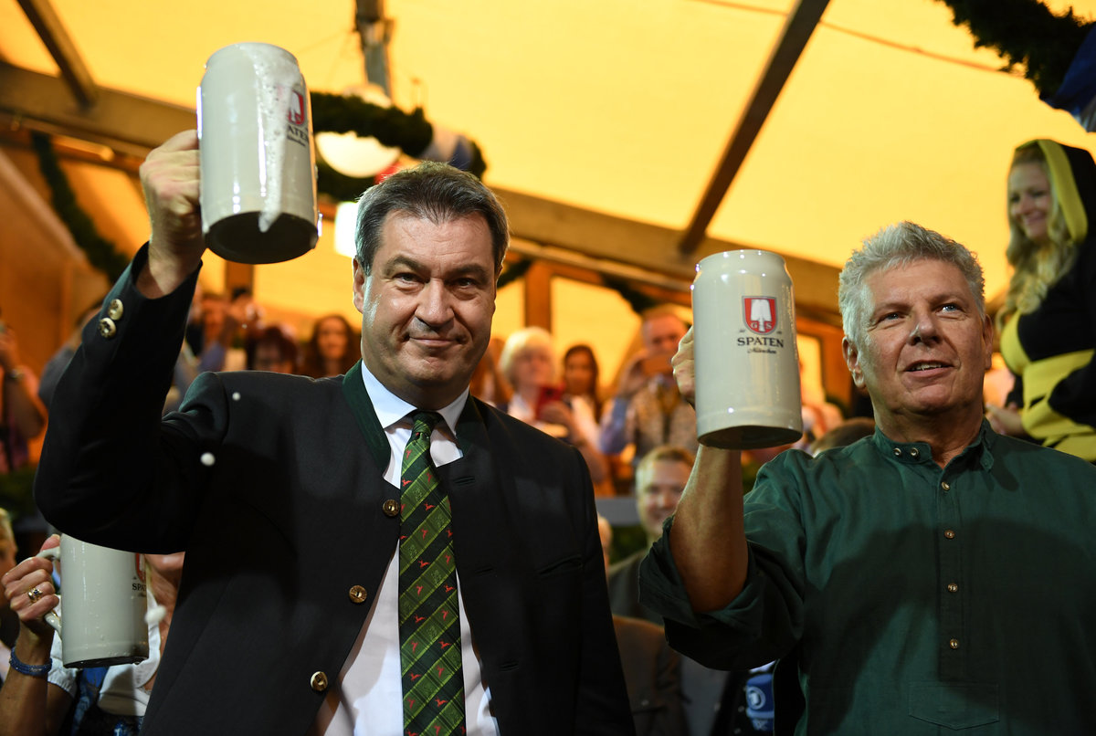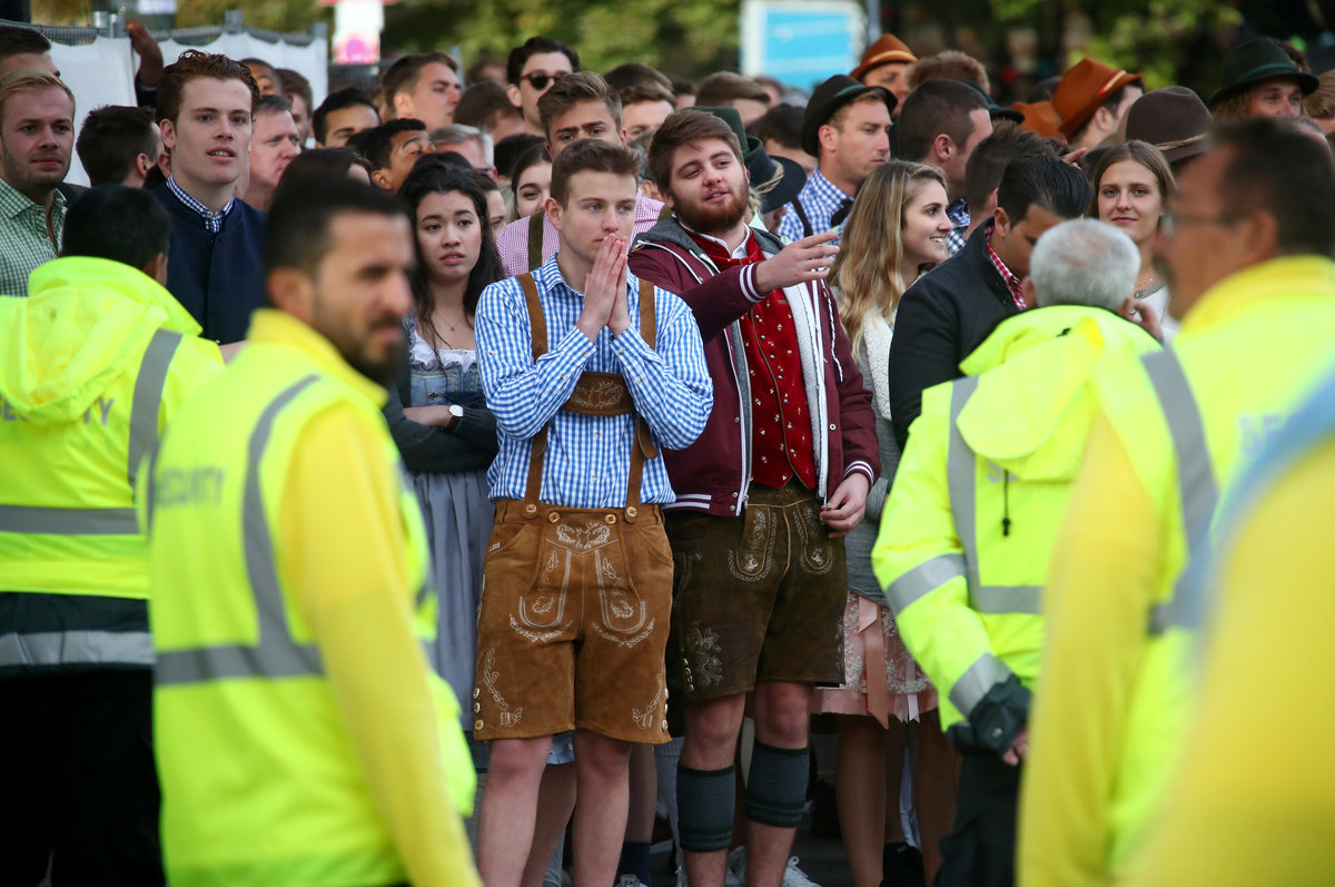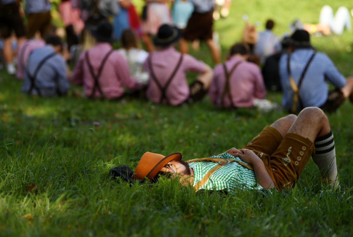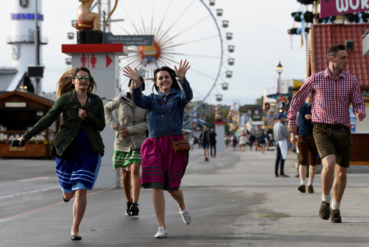A visitor rests during the opening day of the 185th Oktoberfest in Munich, Germany September 22, 2018. REUTERS/Andreas GebertVisitors cheer with beers during the opening day of the 185th Oktoberfest in Munich, Germany September 22, 2018. REUTERS/Michael DalderVisitors ride a swing ride during the opening day of the 185th Oktoberfest in Munich, Germany September 22, 2018. REUTERS/Andreas GebertVisitors ride a ferris wheel during the opening day of the 185th Oktoberfest in Munich, Germany September 22, 2018. REUTERS/Michael DalderVisitors ride a swing ride during the opening day of the 185th Oktoberfest in Munich, Germany September 22, 2018. REUTERS/Andreas GebertA general view shows the festival ground during the opening day of the 185th Oktoberfest in Munich, Germany September 22, 2018. REUTERS/Michael DalderVisitors ride a roller coaster during the opening day of the 185th Oktoberfest in Munich, Germany September 22, 2018. REUTERS/Michael DalderA visitor drinks beer during the opening day of the 185th Oktoberfest in Munich, Germany September 22, 2018. REUTERS/Michael DalderA general view shows the festival ground during the opening day of the 185th Oktoberfest in Munich, Germany September 22, 2018. REUTERS/Andreas GebertVisitors cheer during the opening day of the 185th Oktoberfest in Munich, Germany September 22, 2018. REUTERS/Michael DalderMunich mayor Dieter Reiter prepares to tap the first barrel of beer during the opening ceremony of the 185th Oktoberfest in Munich, Germany September 22, 2018. REUTERS/Andreas GebertMunich mayor Dieter Reiter prepares to tap the first barrel of beer during the opening ceremony of the 185th Oktoberfest in Munich, Germany September 22, 2018. REUTERS/Andreas GebertVisitors toast with beers during the opening day of the 185th Oktoberfest in Munich, Germany September 22, 2018. REUTERS/Michael DalderVisitors toast with beers during the opening day of the 185th Oktoberfest in Munich, Germany September 22, 2018. REUTERS/Michael DalderVisitors reach for the first mugs of beer during the opening day of the 185th Oktoberfest in Munich, Germany September 22, 2018. REUTERS/Michael DalderMunich mayor Dieter Reiter and Bavarian State Prime Minister Markus Soeder toast with beers at the opening day of the 185th Oktoberfest in Munich, Germany September 22, 2018. REUTERS/Andreas GebertMunich mayor Dieter Reiter and Bavarian State Prime Minister Markus Soeder toast with beers at the opening day of the 185th Oktoberfest in Munich, Germany September 22, 2018. REUTERS/Andreas GebertMunich mayor Dieter Reiter and Bavarian State Prime Minister Markus Soeder pose at the opening day of the 185th Oktoberfest in Munich, Germany September 22, 2018. REUTERS/Andreas GebertVisitors take photos at the opening day of the 185th Oktoberfest in Munich, Germany September 22, 2018. REUTERS/Michael DalderVisitors cheer at the opening day of the 185th Oktoberfest in Munich, Germany September 22, 2018. REUTERS/Michael DalderVisitors run to get a spot at the Oktoberfest area at the opening day of the 185th Oktoberfest in Munich, Germany September 22, 2018. REUTERS/Andreas GebertA visitor poses for a picture at the opening day of the 185th Oktoberfest in Munich, Germany September 22, 2018. REUTERS/Andreas GebertA visitor poses for a picture at the opening day of the 185th Oktoberfest in Munich, Germany September 22, 2018. REUTERS/Andreas GebertVisitors queue as they wait to enter the tent at the opening day of the 185th Oktoberfest in Munich, Germany September 22, 2018. REUTERS/Andreas GebertVisitors queue outside the tent at the opening day of the 185th Oktoberfest in Munich, Germany September 22, 2018. REUTERS/Michael DalderA woman adjusts traditional gingerbread hearts at a booth at the opening day of the 185th Oktoberfest in Munich, Germany September 22, 2018. REUTERS/Michael DalderPolice officers are seen standing in front of the ferris wheel during the opening day of the 185th Oktoberfest in Munich, Germany September 22, 2018. REUTERS/Andreas GebertVisitors run to get a spot at the Oktoberfest area at the opening day of the 185th Oktoberfest in Munich, Germany September 22, 2018. REUTERS/Andreas GebertVisitors run to get a spot at the Oktoberfest area at the opening day of the 185th Oktoberfest in Munich, Germany September 22, 2018. REUTERS/Andreas GebertVisitors run to get a spot at the Oktoberfest area at the opening day of the 185th Oktoberfest in Munich, Germany September 22, 2018. REUTERS/Michael DalderVisitors queue outside the tent at the opening day of the 185th Oktoberfest in Munich, Germany September 22, 2018. REUTERS/Michael DalderVisitors queue as they wait for the security to let them enter the Oktoberfest area at the opening day of the 185th Oktoberfest in Munich, Germany September 22, 2018. REUTERS/Michael Dalder