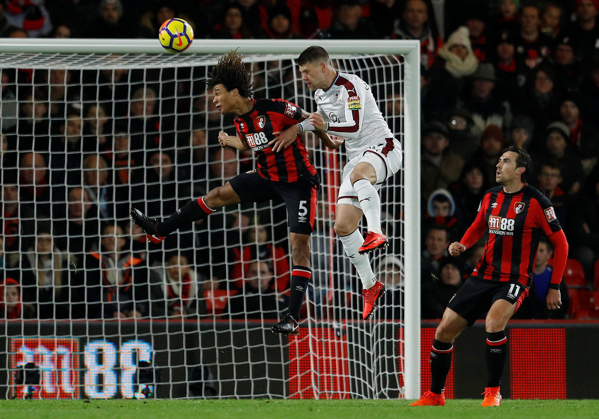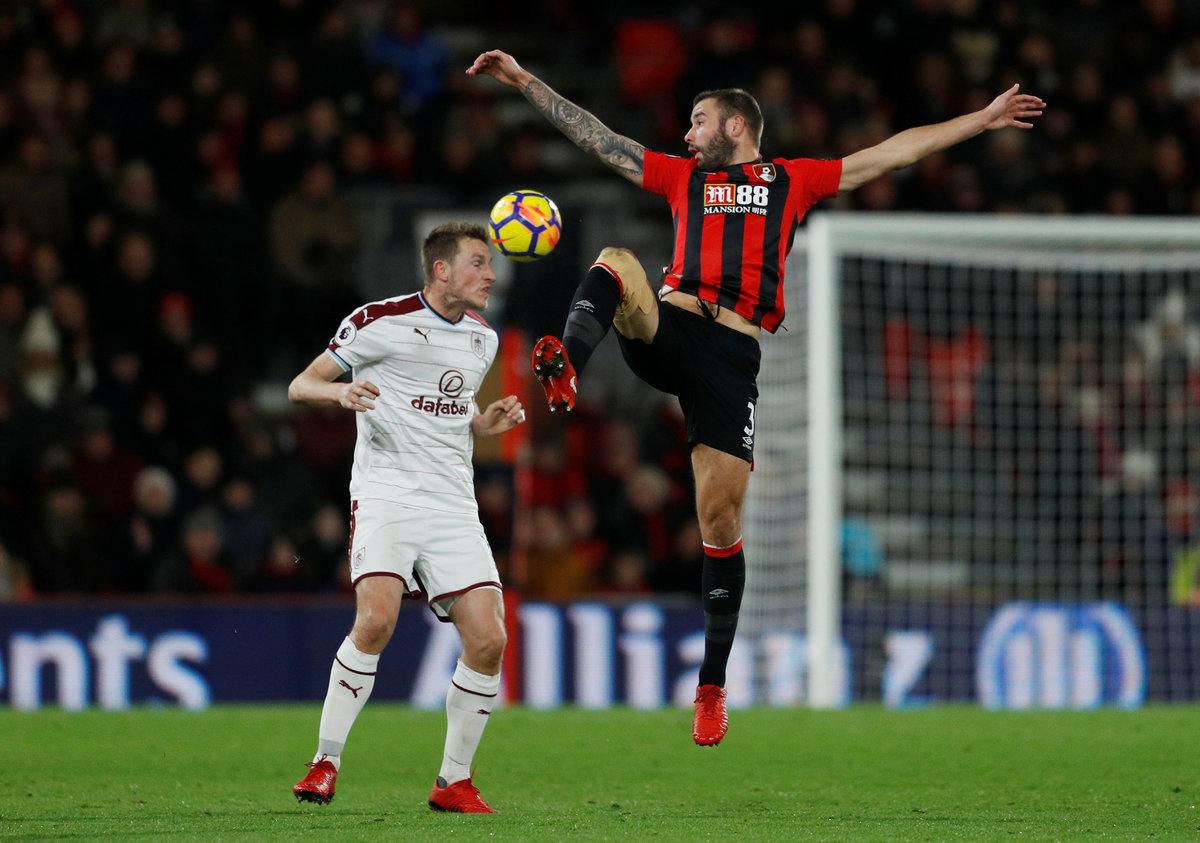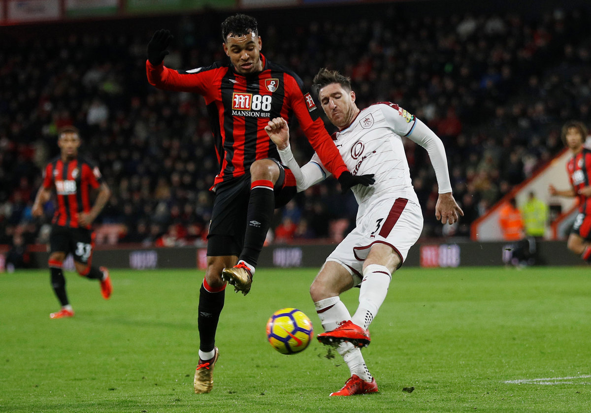 Soccer Football - Premier League - AFC Bournemouth vs Burnley - Vitality Stadium, Bournemouth, Britain - November 29, 2017 Burnley's Stephen Ward in action with Bournemouth's Joshua King REUTERS/Peter Nicholls