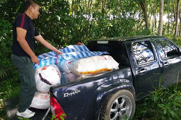 Police were called to the scene. The bags and the pickup truck were taken to Saba Yoi police station. When weighed, there were 450kg of leaves.