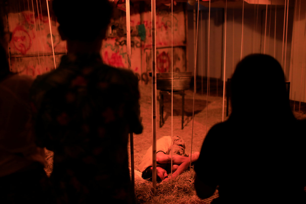 In "Get In", the audience crams into a narrow, sweaty space mimicking Caracas's failing metro system. The actors squeeze through the crowd playing the metro's common troublemakers, like the mobile phone robber and the ranting drunk.