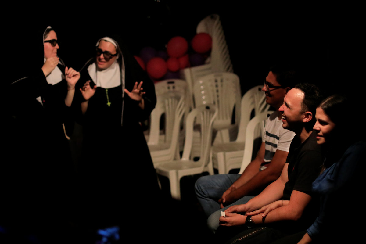 Instead, it is a scene hundreds of Venezuelans have been paying to watch daily at an improvised theater in an old bingo hall, part of a wave of new productions reflecting on Venezuela's political crisis and economic meltdown.
