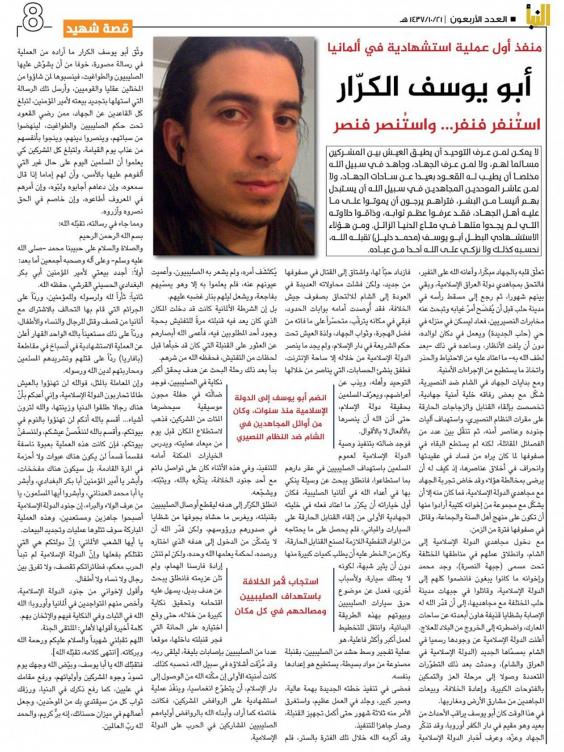 The magazine, published late Thursday, said the 27-year-old Syrian, who went to Germany as an asylum-seeker, had previously fought for a branch of al-Qaida in Iraq.