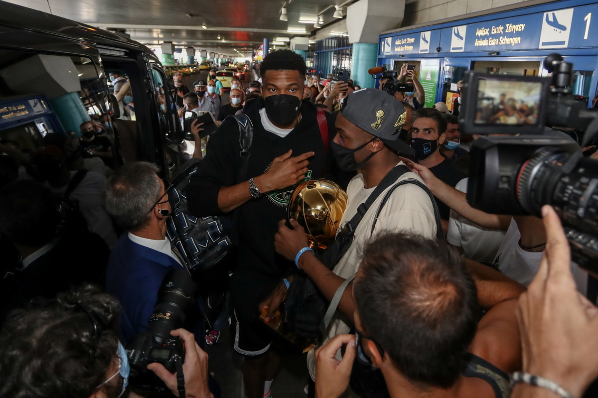 Giannis - sometimes dubbed "the Greek Freak" - was the dominant player in the finals series against the Phoenix Suns, scoring 50 points in the last game and winning the Most Valuable Player award. Thanasis was forced to sit out the last two games of the finals under COVID-19 protocols.