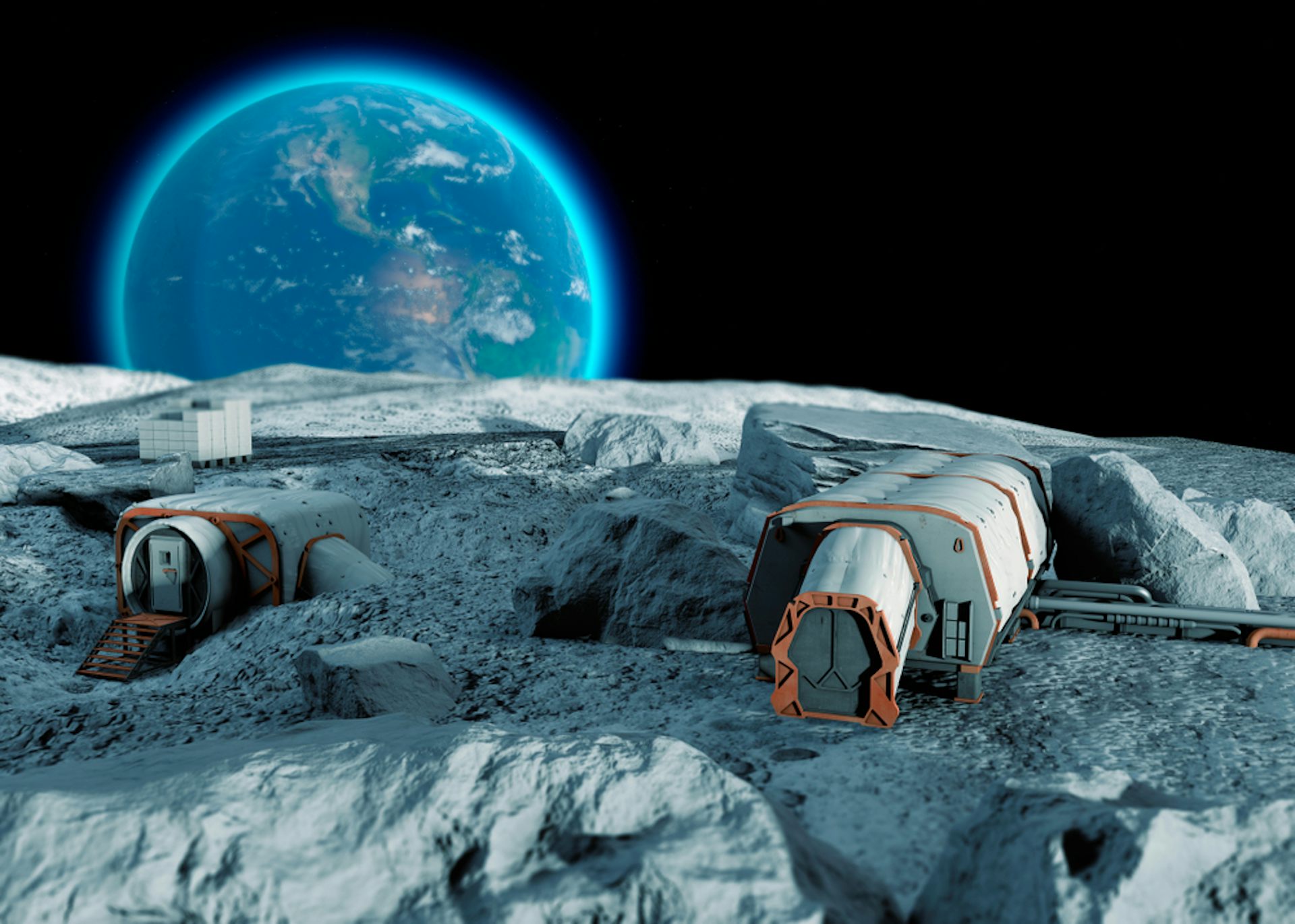 Picture source: An imagined base on the moon, by Naeblys via Shutterstock.