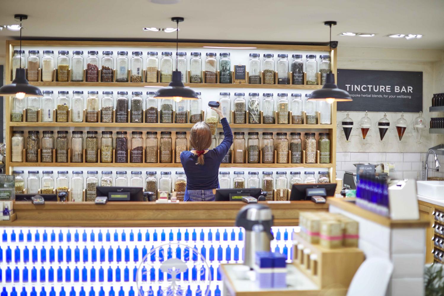 The original store also shelved jars of herbs for making freshly-prepared skin treatments. Today, Neal's Yard Remedies has continued the practice of using botanical extracts and essential oils in making skincare products at its eco-factory in the countryside of North Dorset.