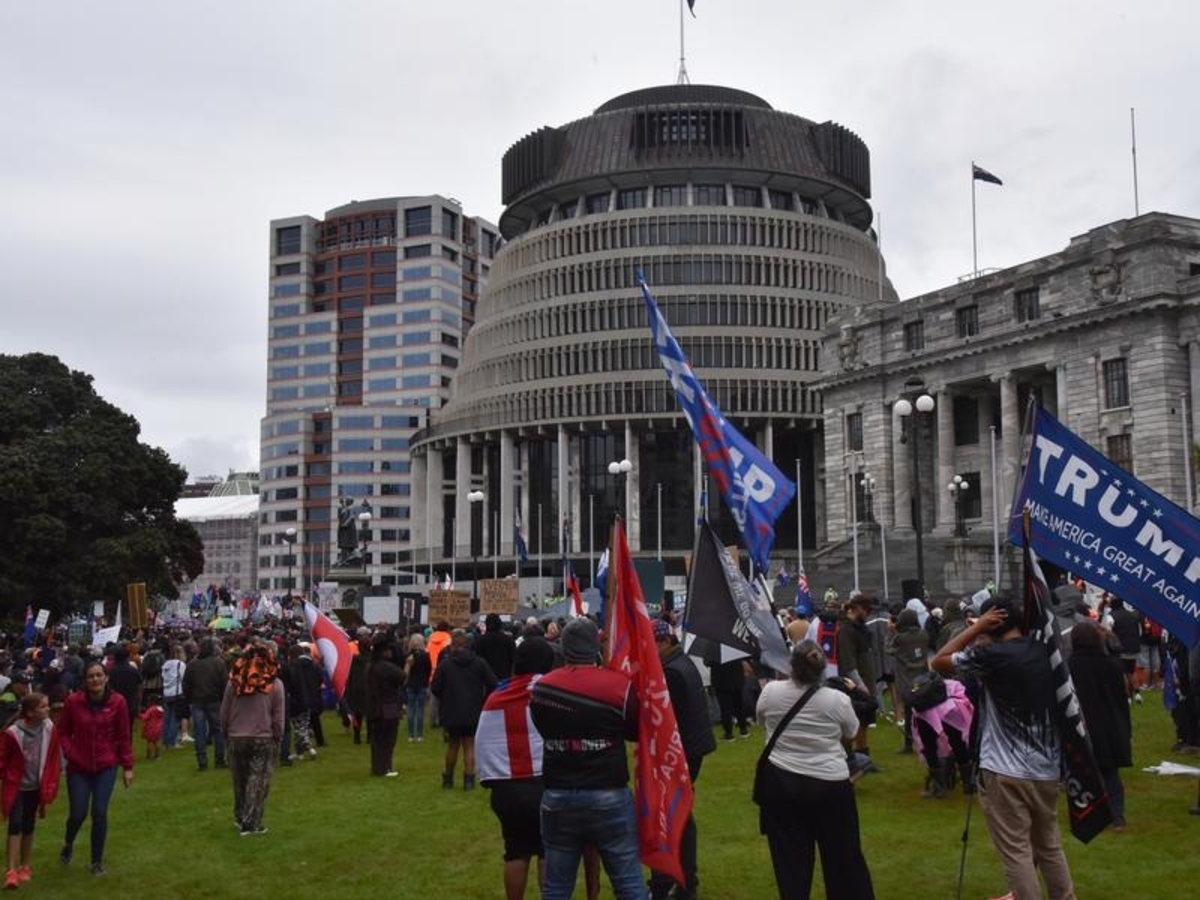 While one man who attempted to climb the Beehive, the executive building which houses Ms Ardern's office, those misbehaving were an extreme minority.