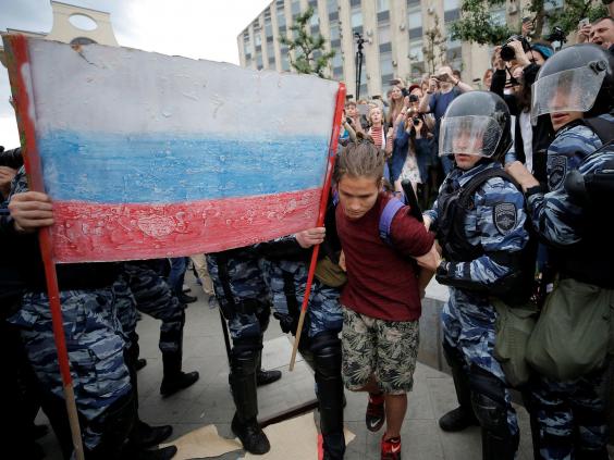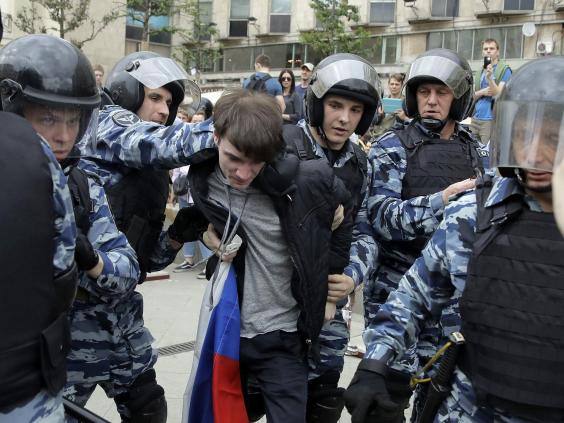 The leading critic of Mr Putin, Alexei Navalny, was detained by authorities in the capital half an hour before the demonstration was due to begin.