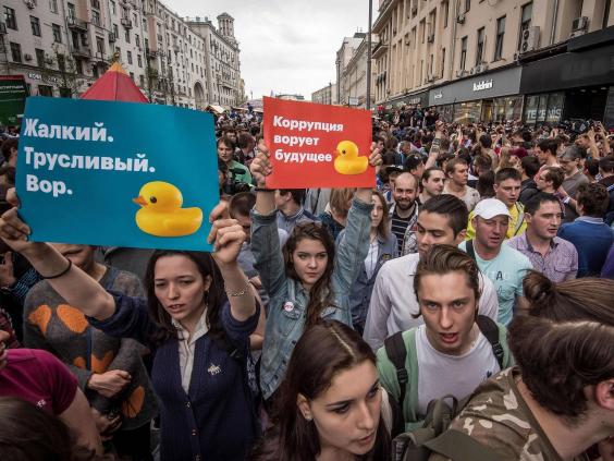 Thousands of Russians are protesting against corruption, part of Mr Navalny’s long-shot drive to unseat Mr Putin next year, by harnessing anger over what he calls official fraud.