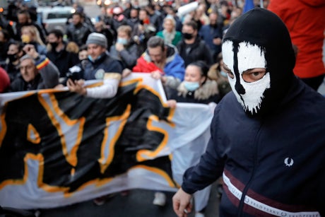 More than a thousand people gathered in the capital, Bucharest sounding horns and chanting “Freedom!” as they marched to the government headquarters in central Victory Square. One man was detained by police after refusing to identify himself for not wearing a face mask.