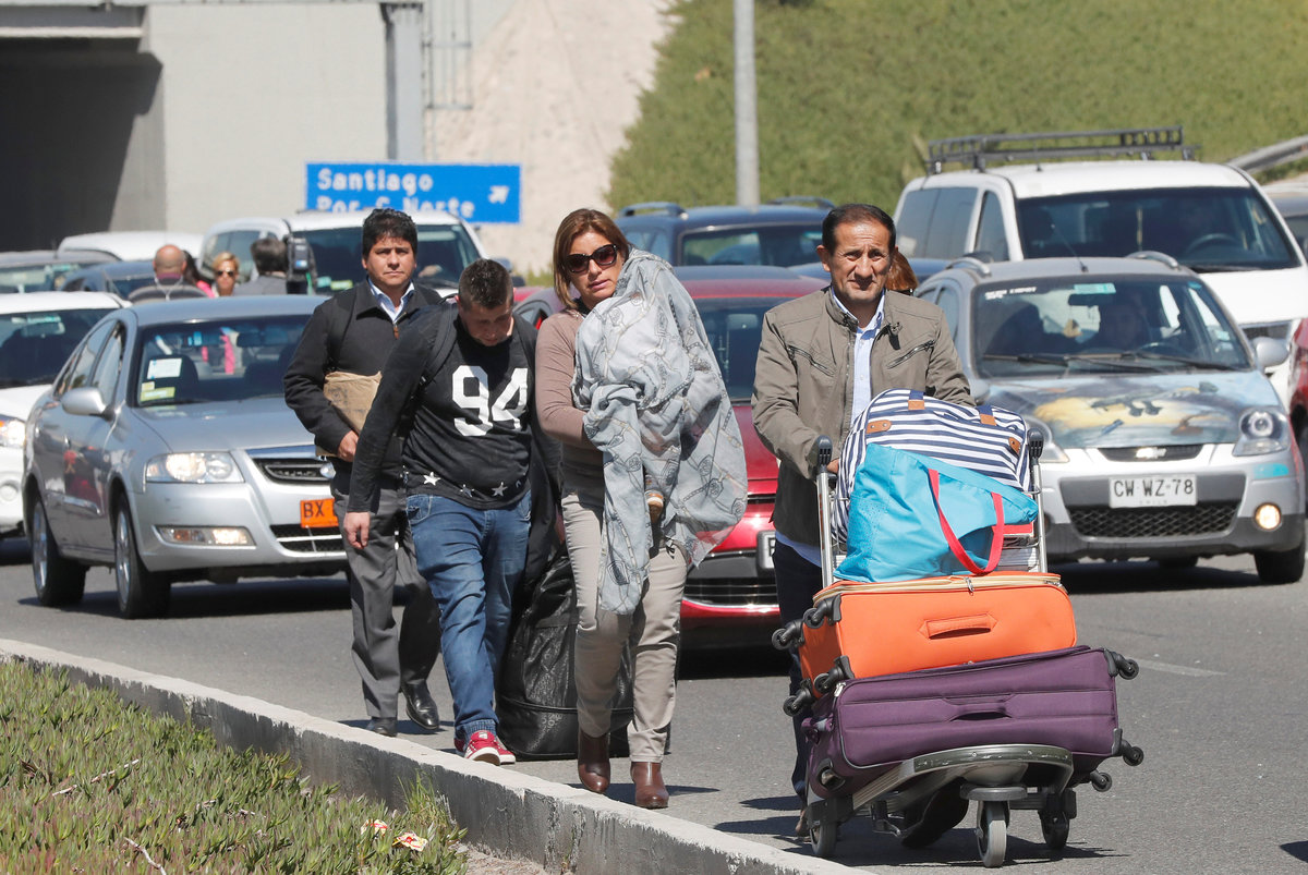 Santiago-based LATAM Airlines, the region's biggest carrier, as well as budget carrier Sky suffered delays, local media reported. Television images showed traffic backed up for miles (kilometers), while many passengers resorted to walking along the highway.