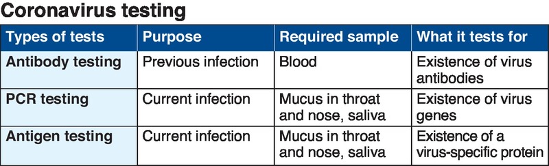 There are two methods to determine whether a person is currently infected with the virus: PCR (polymerase chain reaction) testing and antigen testing. PCR tests are used to determine the existence of the virus gene, and antigen tests check for the existence of a virus-specific protein.