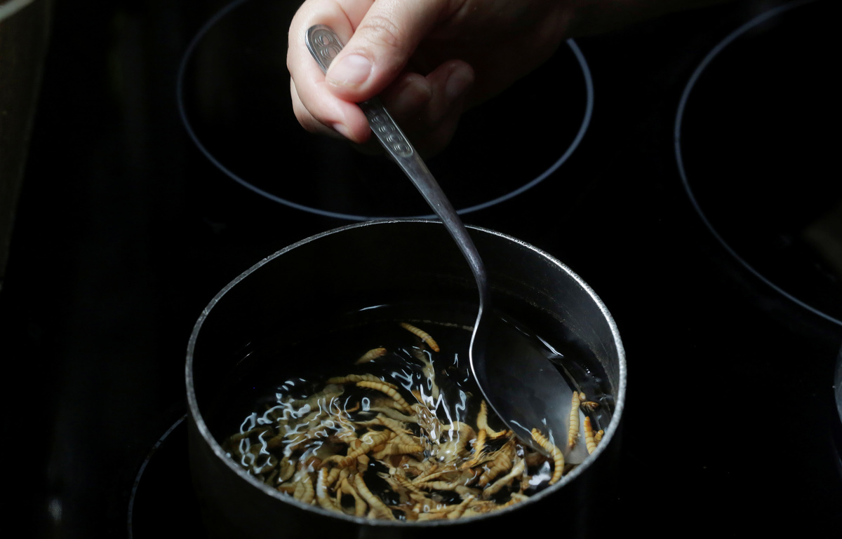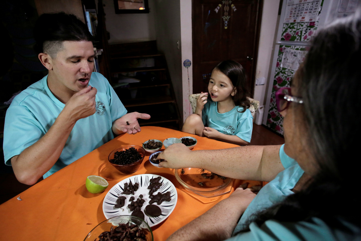 Cricket larvae are pictured in the insect farm for human consumption of the biologist Federico Paniagua, as he is promoting the ingestion of a wide variety of insects, as a low-cost and nutrient-rich food in Grecia, Costa Rica, June 22, 2019. REUTERS/Juan Carlos UlateCosta Rican biologist Federico Paniagua and his wife Gabriela work on their insect farm for human consumption, as he is promoting the ingestion of a wide variety of insects, as a low-cost and nutrient-rich food in Grecia, Costa Rica, June 22, 2019. REUTERS/Juan Carlos UlateAfrican cockroaches are pictured in the insect farm for human consumption of the biologist Federico Paniagua, as he is promoting the ingestion of a wide variety of insects, as a low-cost and nutrient-rich food in Grecia, Costa Rica, June 22, 2019. REUTERS/Juan Carlos UlateAfrican cockroaches are pictured in the insect farm for human consumption of the biologist Federico Paniagua, as he is promoting the ingestion of a wide variety of insects, as a low-cost and nutrient-rich food in Grecia, Costa Rica, June 22, 2019. REUTERS/Juan Carlos UlateAn African cockroach is pictured in the insect farm for human consumption of the biologist Federico Paniagua, as he is promoting the ingestion of a wide variety of insects, as a low-cost and nutrient-rich food in Grecia, Costa Rica, June 22, 2019. REUTERS/Juan Carlos UlateAfrican cockroaches are pictured in the insect farm for human consumption of the biologist Federico Paniagua, as he is promoting the ingestion of a wide variety of insects, as a low-cost and nutrient-rich food in Grecia, Costa Rica, June 22, 2019. REUTERS/Juan Carlos UlateCosta Rican biologist Federico Paniagua, gives a talk about insects for human consumption to students of the University of Costa Rica, as he is promoting the ingestion of a wide variety of insects, as a low-cost and nutrient-rich food in San Jose, Costa Rica, June 18, 2019. Picture taken June 22,2019. REUTERS/Juan Carlos UlateAfrican cockroaches are pictured in the insect farm for human consumption of the biologist Federico Paniagua, as he is promoting the ingestion of a wide variety of insects, as a low-cost and nutrient-rich food in Grecia, Costa Rica, June 18, 2019. Picture taken June 18, 2019. REUTERS/Juan Carlos UlateCosta Rican biologist Federico Paniagua, shows African cockroaches to students during a talk about insects for human consumption at the University of Costa Rica, as he is promoting the ingestion of a wide variety of insects, as a low-cost and nutrient-rich food in San Jose, Costa Rica, June 18, 2019. Picture taken June 22,2019. REUTERS/Juan Carlos UlateGabriela Soto cooks cricket larvae, as her husband biologist Federico Paniagua promoting the ingestion of a wide variety of insects, as a low-cost and nutrient-rich food in Grecia, Costa Rica, June 22, 2019. Picture taken June 22,2019. REUTERS/Juan Carlos UlateA cooked cricket for human consumption is pictured in the house of the biologist Federico Paniagua who is promoting the ingestion of a wide variety of insects, as a low-cost and nutrient-rich food in Grecia, Costa Rica, June 22, 2019. REUTERS/Juan Carlos UlateCooked crickets are pictured in the house of the biologist Federico Paniagua who is promoting the ingestion of a wide variety of insects, as a low-cost and nutrient-rich food in Grecia, Costa Rica, July 13, 2019. REUTERS/Juan Carlos Ulate Cooked cricket larvae are pictured in the house of the biologist Federico Paniagua who is promoting the ingestion of a wide variety of insects, as a low-cost and nutrient-rich food in Grecia, Costa Rica, June 22, 2019. REUTERS/Juan Carlos UlateAbigail daughter of biologist Federico Paniagua, eat a cricket larva, as he is promoting the ingestion of a wide variety of insects, as a low-cost and nutrient-rich food in Grecia, Costa Rica, July 13, 2019. REUTERS/Juan Carlos UlateBiologist Federico Paniagua and family eat insects while promoting the ingestion of a wide variety of insects as low-cost and nutrient-rich food, in Grecia, Costa Rica, July 13, 2019. REUTERS/Juan Carlos UlateGabriela Soto prepares insects for lunch, while her husband biologist Federico Paniagua (unseen) promotes the ingestion of a wide variety of insects as a low-cost and nutrient-rich food, in Grecia, Costa Rica, July 13, 2019. REUTERS/Juan Carlos UlatePrepared insects are pictured at the house of biologist Federico Paniagua, who is promoting the ingestion of a wide variety of insects as a low-cost and nutrient-rich food, in Grecia, Costa Rica, July 13, 2019. REUTERS/Juan Carlos UlateA zompopa ant reared for human consumption is pictured in the insect farm of biologist Federico Paniagua, as he promotes the ingestion of a wide variety of insects as a low-cost and nutrient-rich food, in Grecia, Costa Rica July 13, 2019. REUTERS/Juan Carlos UlateInsects for human consumption that are covered with chocolate are seen in the house of biologist Federico Paniagua, who is promoting the ingestion of a wide variety of insects as a low-cost and nutrient-rich food, in Grecia, Costa Rica, June 22, 2019. REUTERS/Juan Carlos UlateA zompopa ant reared for human consumption is pictured in the insect farm of biologist Federico Paniagua, as he promotes the ingestion of a wide variety of insects as a low-cost and nutrient-rich food, in Grecia, Costa Rica July 13, 2019. REUTERS/Juan Carlos Ulate