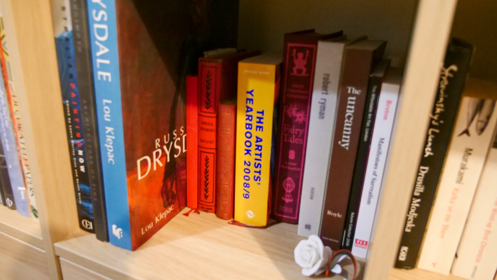 Big canvases of her work fill the walls of her home and the shelves are full of books.