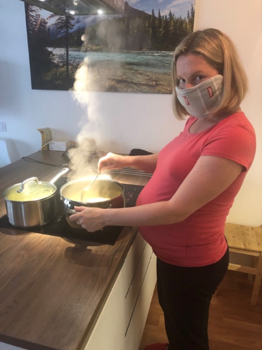 "My midwife told me: maternity wards have never been cleaner," she said. "I try not to let it get to me too much. I still walk my dog every day and drink coffee at the local shop."