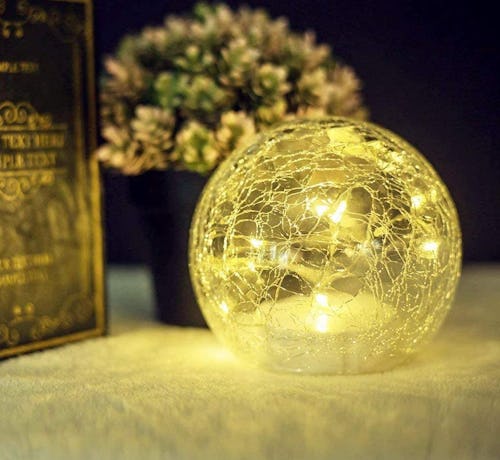 A great alternative to a candle, this glass globe light is a great way to set the mood once the sun sets. With a crackle finish, the globe is filled with energy-efficient LED bulbs that are powered by AA batteries, so you don't need to have a plug nearby to light this up.