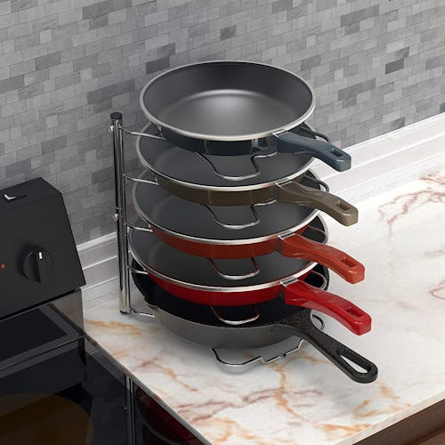 There's almost nothing more annoying than having to unstack all your pans to get to the big one on the bottom, but this pan rack solves that problem. It has space for up to five pans and can be used either vertically or horizontally, depending on your kitchen setup.