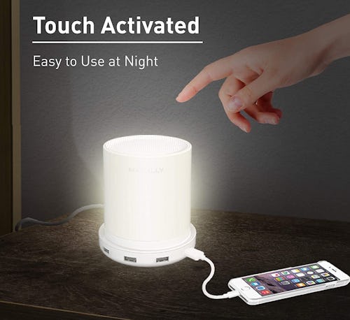 This touch-activated LED lamp features three brightness levels that you can toggle through at the tap of your finger, and it also has the added benefit of being a charging station, thanks to the four built-in USB ports. The small footprint takes up minimal space on your nightstand or desk, and it's a great way to save on outlet space.
