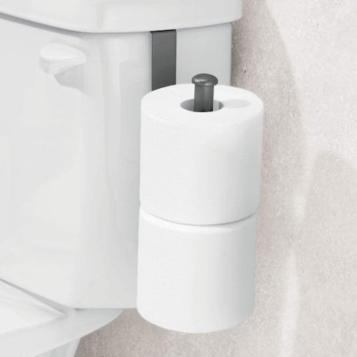 This ingenious toilet paper holder hooks right onto the tank, so you always have an extra roll on hand. The space-saving design has room for up to two rolls, and it comes in six colors, like graphite, bronze, and matte black.