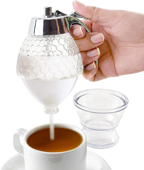 If you’re tired of a daily sugary spoon on the counter (or even of putting them in the dishwasher), this clever sugar dispenser is here to streamline your coffee or tea routine. A simple thumb trigger controls your desired amount of sweetness, no fuss, no mess. And the unique jar comes with a base to keep any stray sugar off the counter.