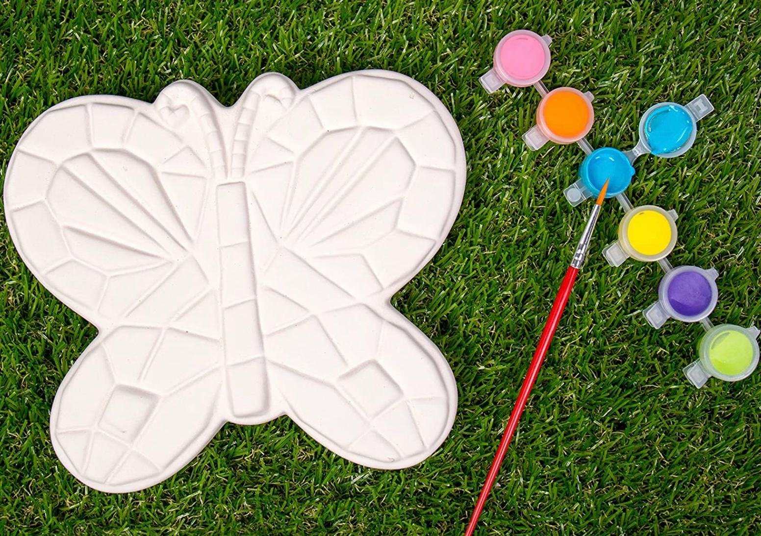 This paintable stepping stone has a little butterfly shape that will look so cute in your garden. It comes with paint, and there’s zero prep involved, so you can quickly decorate it with whatever colors match your patio decor. The durable ceramic design also already has a mosaic pattern built-in and comes in 12 different designs, including a flower, sun, and heart.