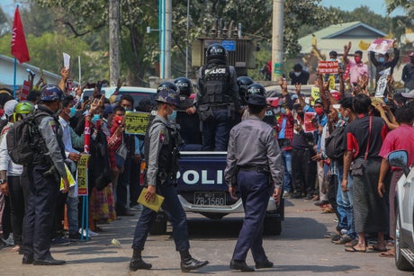 Special rapporteur Tom Andrews said in an interview with The Associated Press that the initial restraint of police dealing with “robust citizen opposition to the coup” has moved on in some instances to use of rubber bullets, real ammunition being fired and use of water cannons.