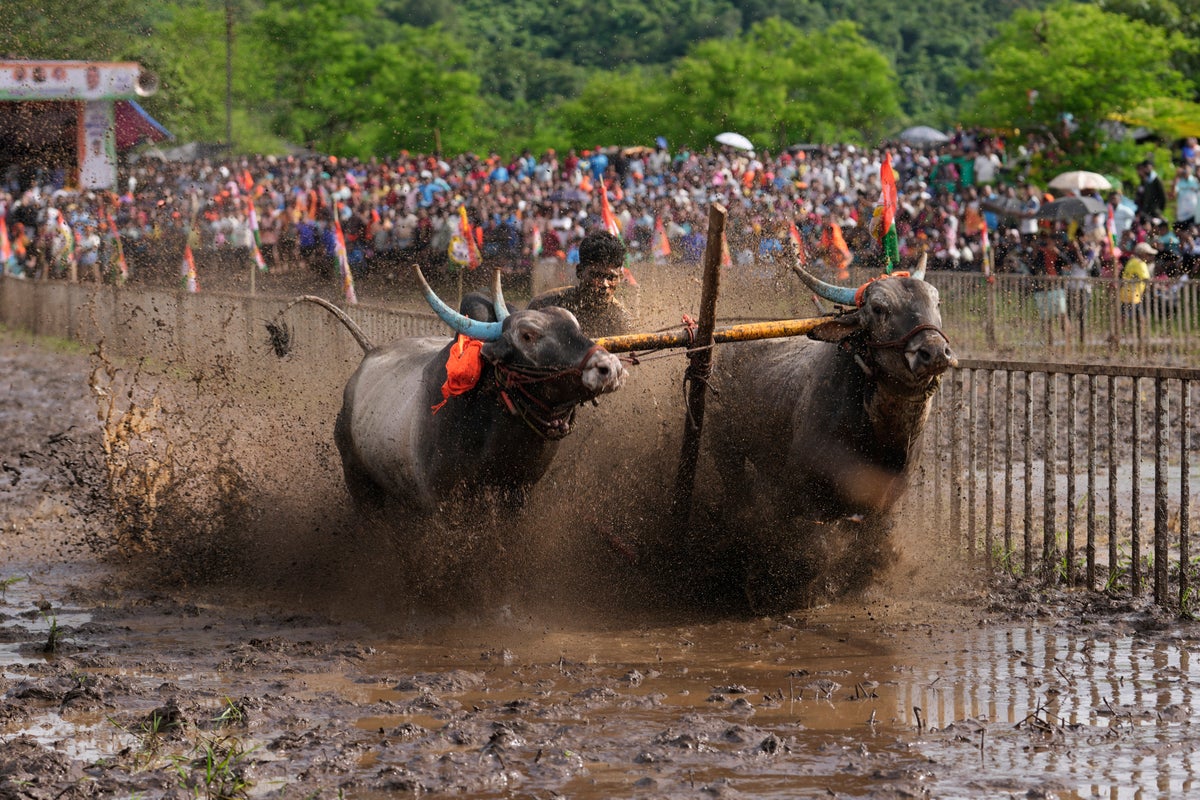 A village committee holds the annual event, known as Nagarni Spardha, a centuries-old tradition, at the peak of the rainy season. The soft muddy ground prevents serious injury to the drivers, who compete in bare feet and without protective gear.