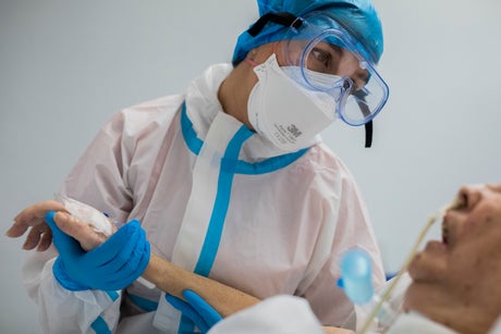 Things have improved from the early days when the hospital wasn’t able to take in all the patients in need to be put on a mechanical respirator. But not everybody can sustain the invasive technique, which requires intubation and, often, long periods in an intensive care unit facing down, in the prone position, which helps the lungs to pump oxygen.