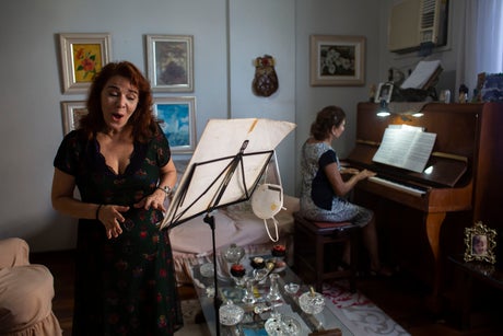 Georgia Szpilman’s soprano voice resounds beautifully in the apartment’s small living room, though the space lacks the acoustics of where her choir used to sing — Rio de Janeiro’s majestic municipal theater, which has been closed for over a year because of the pandemic.
